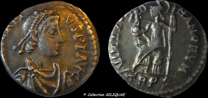 |  | WM n° 9451 (Fiche) 383-402 AD Nummus o AE4 - Cyzique A/ [D N A]RCADIVS P F AVG R/ VOT V |