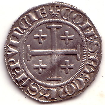 |   | WM n° 750 (Fiche) 1347 - 1382 Petit sol ou denier - Tarascon A/ +.L.ET.I.IHR.ET.SIC.REX R/ + COMES.ET COMTSA PVICE |