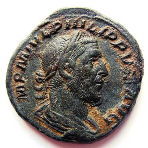 |   | WM n° 1853 (Fiche) 248 d.C. Sestercio - Roma A/ IMP. M. IVL. PHILIPPVS AVG. R/ P. M. TR. P. V. COS. III. P. P. |