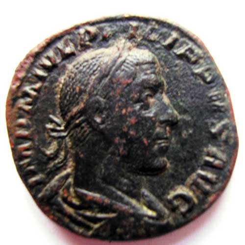 |   | WM n° 1676 (Fiche) 244 - 249 d. C. Sestercio - Roma A/ IMP. M. IVL. PHILIPPVS AVG. R/ FIDES EXERCITVS. S-C. |