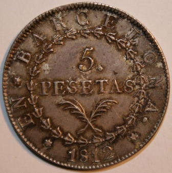 |   | WM n° 6568 (Fiche) 1812 1 Peseta - Barcelona A/ EN * BARCELONA * 1812 * PESETA R/ AnepÃgrafa |