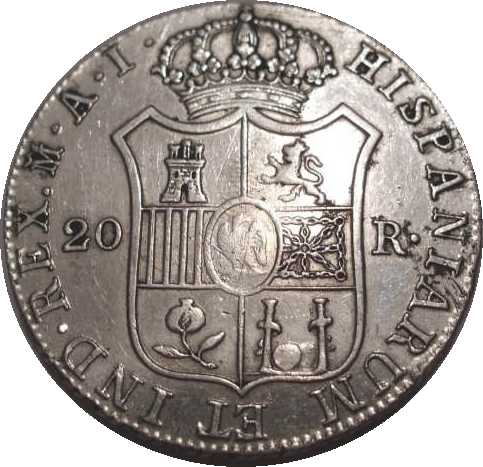 |   | WM n° 8930 (Fiche) 1808 20 Reales - Madrid A/ IOSEPH • NAP • DEI • GRATIA • 1808 • R/ HISPANIARUM ET IND • REX • M • A • I • |
