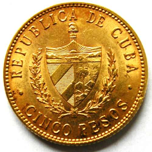 |   | WM n° 5136 (Fiche) 1916 5 Pesos - A/ PATRIA Y LIBERTAD • 8.359 G • 1916 • 900 M • R/ REPÚBLICA DE CUBA • 5 PESOS • |