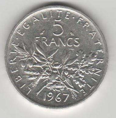 |   | WM n° 2916 (Fiche) 1967 cinq francs Semeuse - A/ REPUBLIQUE FRANÇAISE R/ LIBERTÉ ÉGALITÉ FRATERNITÉ |