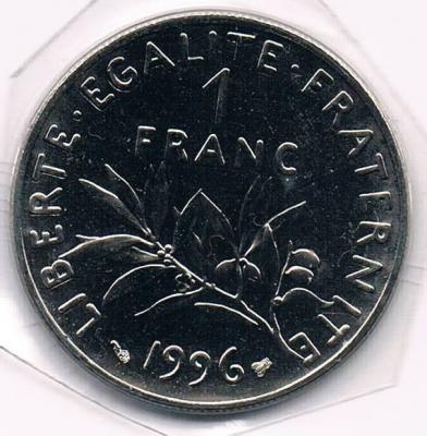 |   | WM n° 7551 (Fiche) 1996 1 FRANC - A/ REPUBLIQUE FRANCAISE R/ LIBERTE EGALITE FRATERNITE |