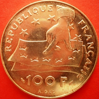 |   | WM n° 10308 (Fiche) 1992 100 Francs - A/ COMMUNAUTE EUROPEENNE/JEAN MONNET "UNIR LES HOMMES" R/ LIBERTE.EGALITE.FRATERNITE |