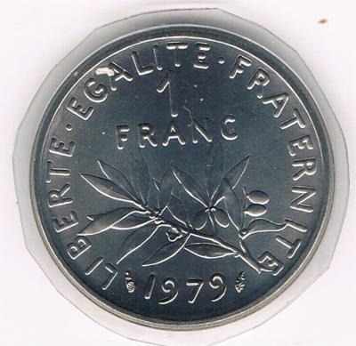 |   | WM n° 7549 (Fiche) 1979 1 FRANC - A/ REPUBLIQUE FRANCAISE R/ LIBERTE EGALITE FRATERNITE |