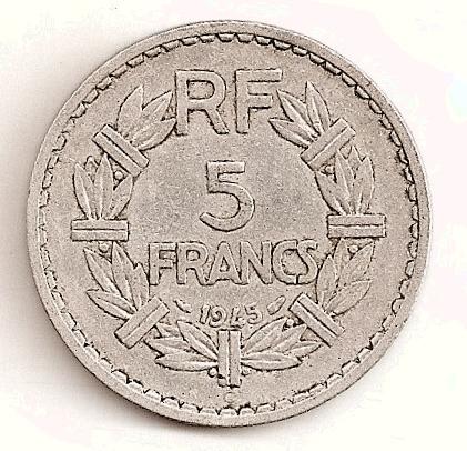 |   | WM n° 2907 (Fiche) 1945 cinq francs Lavrillier - Castelsarrasin A/ REPUBLIQUE FRANCAISE R/ RF |