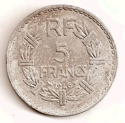 |   | WM n° 2909 (Fiche) 1946 cinq francs Lavrillier - Castelsarrasin A/ REPUBLIQUE FRANCAISE R/ RF |