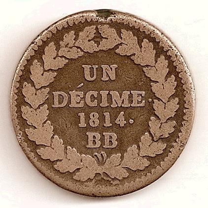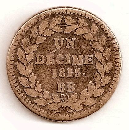 |   | WM n° 5767 (Fiche) 1815 1 décime au L - Strasbourg A/ L R/ UN // DECIME. // 1815. // BB | |   | WM n° 5827 (Fiche) 1820 30 sous Mines d' Aniche - - A/ M D // 1820 R/ 30 S | |   | WM n° 3063 (Fiche) 1815 Décime à l’L couronnée - BB - Strasbourg A/ Anépigraphe. R/ UN/ DÉCIME./ (millésime)./ BB |