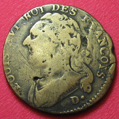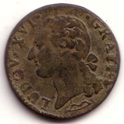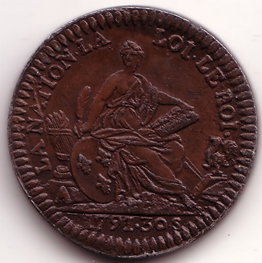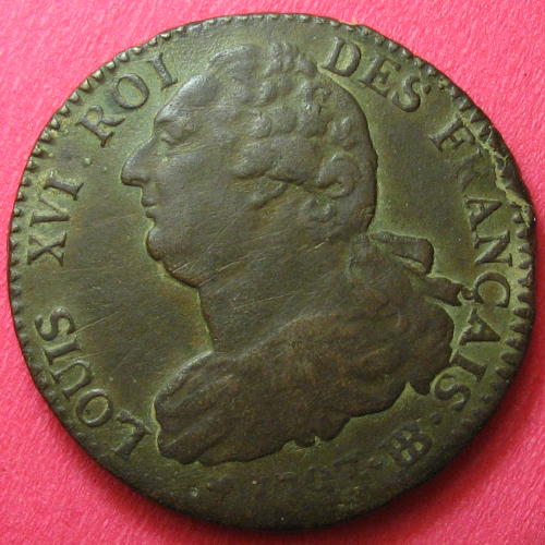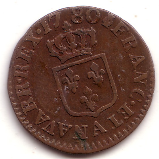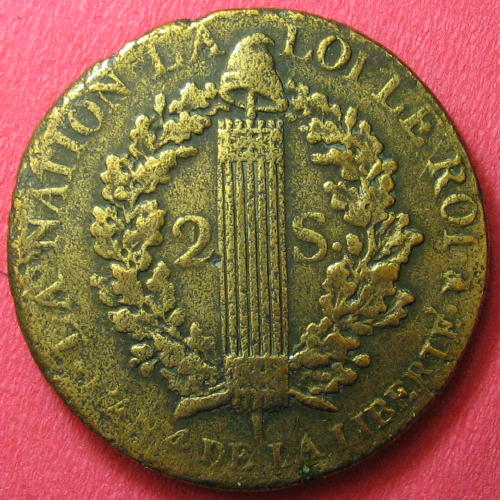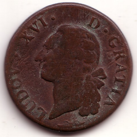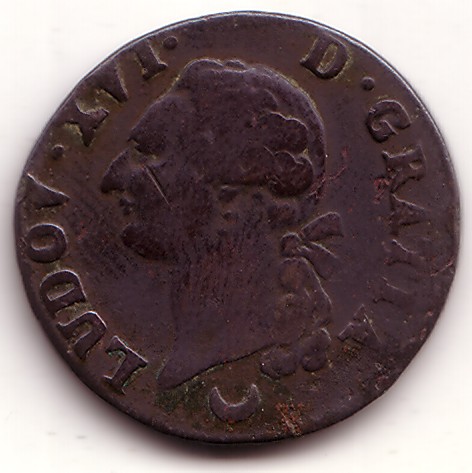 |   | WM n° 2613 (Fiche) 1789 deux sous Cayenne - Paris A/ LOUIS XVI R DE FR ET DE NAV R/ 2 SOUS 1789 / COLONIE DE CAYENNE |