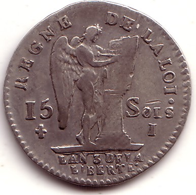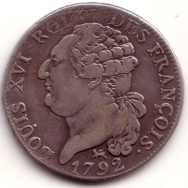 |   | WM n° 2618 (Fiche) 1791 faux écu aux branches d'olivier - Paris A/ LUD XVI D G FR ET NAV REX R/ SIT NOMEN DOMINI BENEDICTUM 1791 |