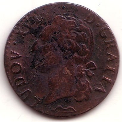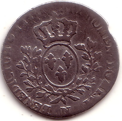 |   | WM n° 2611 (Fiche) 1752 vingtième d'écu au bandeau - Reims A/ LUD XV D G FR ET NAV REX R/ SIT NOMEN DOMINI BENEDICTUM 1752 |