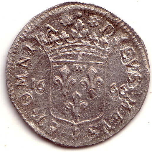 |   | WM n° 1977 (Fiche) 1642 douzième d´écu - Paris A/ LVDOVICVS.XIII.D.G.FR.ET.NAV.REX R/ SIT.NOMEN.DOMINI. A .BENEDICTVM.1642. |