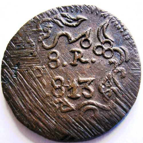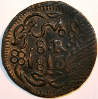 |   | WM n° 7596 (Fiche) 1813 8 Reales - Morelos A/ 8. R. 1813 R/ SUD |