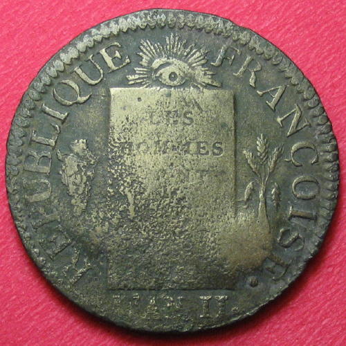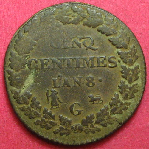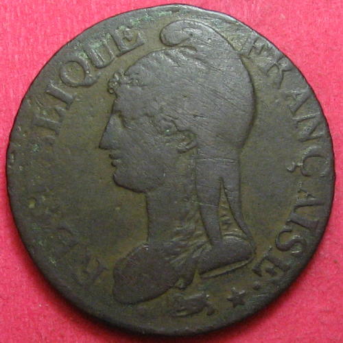 |   | WM n° 2635 (Fiche) AN 7 cinq centimes gd module - Bordeaux A/ RÉPUBLIQUE FRANÇAISE R/ CINQ CENTIMES |