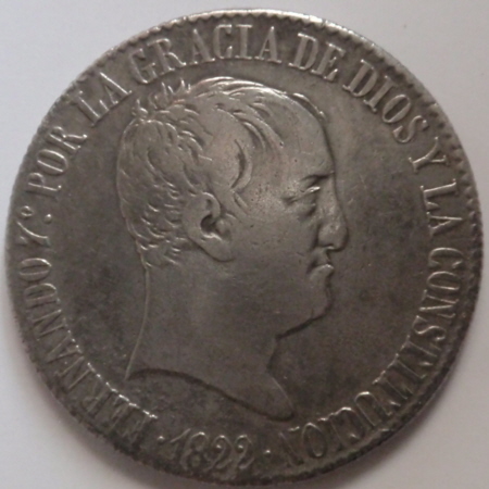 |   | WM n° 6270 (Fiche) 1822 8 Reales - Durango A/ FERDINANDUS VII DEI GRATIA R/ HISPAN ET IND REX D 8R CG |