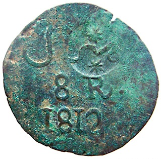 |   | WM n° 7476 (Fiche) 1812 8 Reales - Zacatecas A/ FERDIN · VII · S R · GRATIA ·1812· R/ MONEDA PROVISIONAL DE ZACATECAS |