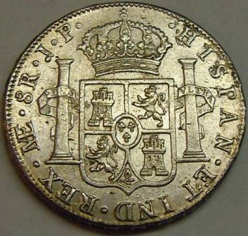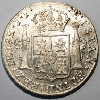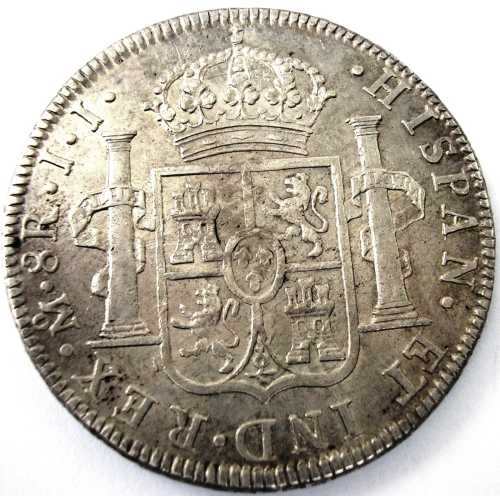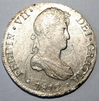 |   | WM n° 10063 (Fiche) 1812 8 Reales - Méjico A/ FERDIN VII DEI GRATIA 1812 R/ HISPAN ET IND REX Mº 8 R J J |