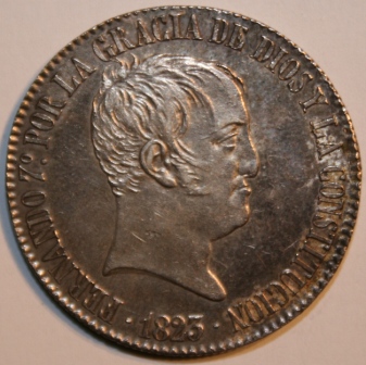 |   | WM n° 6313 (Fiche) 1820 8 Reales - Sevilla A/ FERDINANDUS VII DEI GRATIA 1820 R/ HISPANIARUM REX 8 R S CJ |