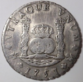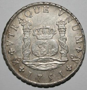 |   | WM n° 8682 (Fiche) 1751 8 Reales - México A/ FERDND VI D G HISPAN ET IND REX * R/ VTRAQUE VNUM * Mº * 1751 * Mº * |