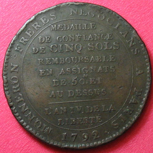|   | WM n° 2634 (Fiche) AN 7 cinq centimes gd module - Paris A/ RÉPUBLIQUE FRANÇAISE R/ CINQ CENTIMES |