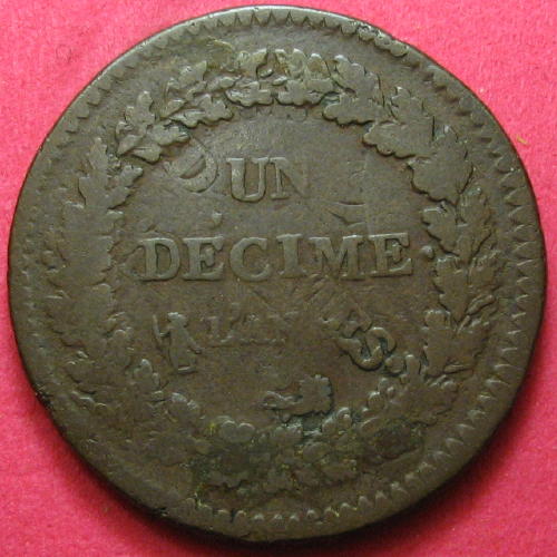 |   | WM n° 2638 (Fiche) AN 5 décime gd module - Rouen A/ RÉPUBLIQUE FRANÇAISE R/ UN DÉCIME |