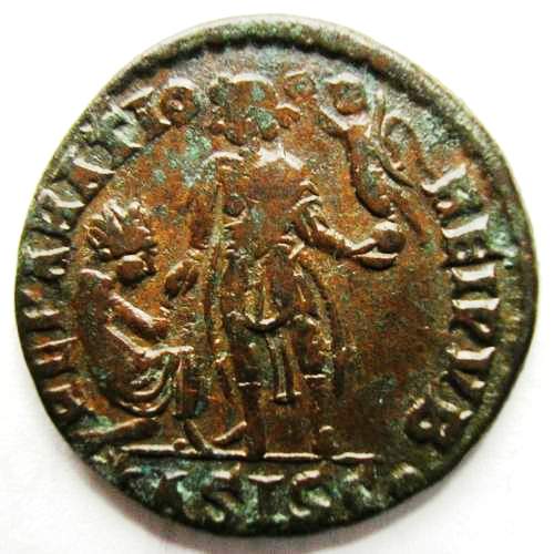 |  | WM n° 9789 (Fiche) 330-335 d.C. R4 - Constantinople A/ FL IVL CONSTANTIVS NOB C R/ GLOR-IA EXERCITVS |