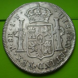 |   | WM n° 7454 (Fiche) 1809 8 Reales - Lima A/ FERDIN VII DEI GRATIA 1809 R/ HISPAN ET IND REX ME 8 R J P |