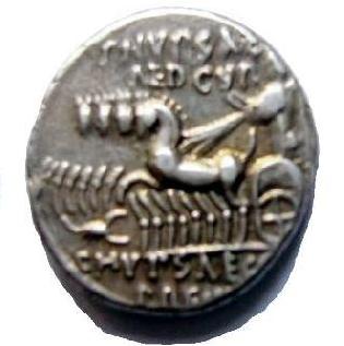 |   | WM n° 12 (Fiche) 58 a.C. Denario - Roma A/ Arriba : M. SCAUR. A los lados: EX- -S.-C. En el exergo : REX ARETAS R/ Arriba: P. HUPSAE. AED. CUR. En el campo: CAPTU. En el exergo: C. HYPSAEOS. PREIVE. |