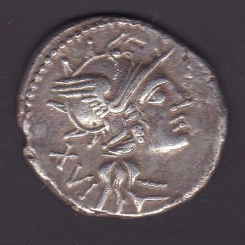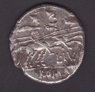 |   | WM n° 3570 (Fiche) 141 a.C Denario - Roma A/ Anepígrafa R/ L.IVLI (V y L, unidas). Exergo: ROMA |