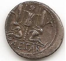 |   | WM n° 6298 (Fiche) 49-48 a.C. Denario - Ceca móvil probablemente de la Galia, aunque tambien pudiera ser en Hispania, Italia... A/ Anepígrafa R/ CAESAR |