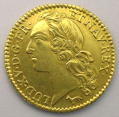 |   | WM n° 10153 (Fiche) 1753 louis d or au bandeau - A: Paris A/ LUD° XV °D° G° FR° ET NAV° REX R/ CHRS° REGN° VINC° IMPER 1753 |