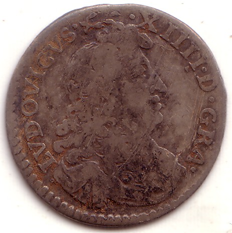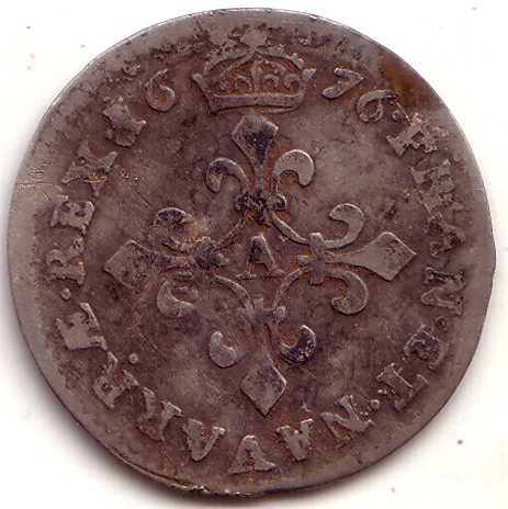 |   | WM n° 3295 (Fiche) 1676 4 sols dits - LYON (D) A/ LVDOVICVS .XIIII. D. GRA.. R/ FRAN. ET. NAVARRÆ. REX. 16 (couronne) 76 |