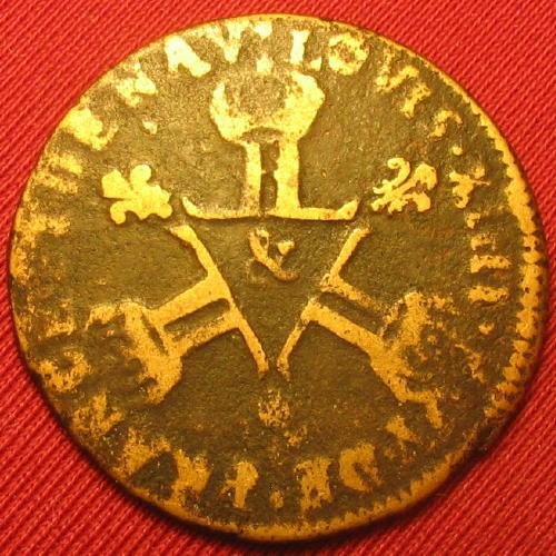 |   | WM n° 4396 (Fiche) 1694 Liard de France - Montpellier A/ L.XIIII.ROY.DE FR.ET.DE.NAV.1694 R/ LIARD//.DE.//FRANCE |