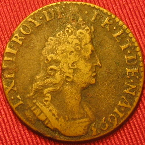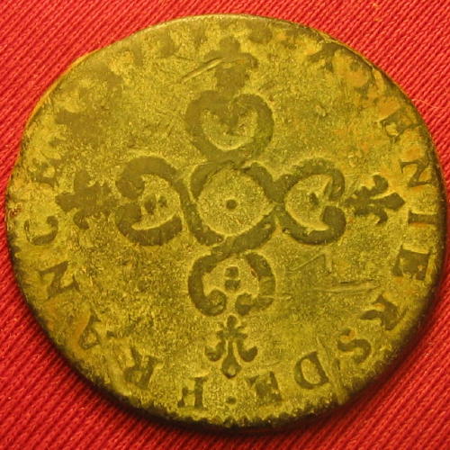 |   | WM n° 4397 (Fiche) 1695 Liard de France - Lyon A/ L.XIIII.ROY.DE FR.ET.DE.NAV.1695 R/ LIARD//.DE.//FRANCE |