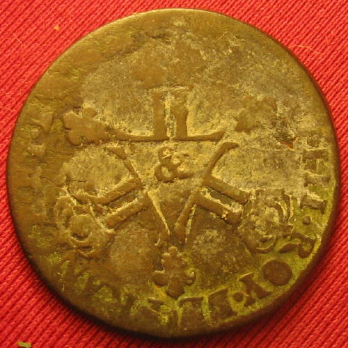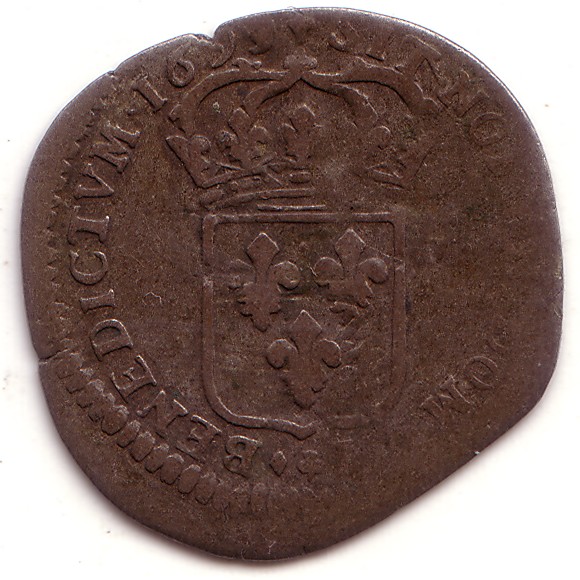 |   | WM n° 4723 (Fiche) 1694 Ecu aux palmes - Montpellier A/ LVD.XIIII.D.G FR.ET.NAV.REX R/ (croissant) SIT.NOMEN.DOMINI. N .BENEDICTVM.1694 |