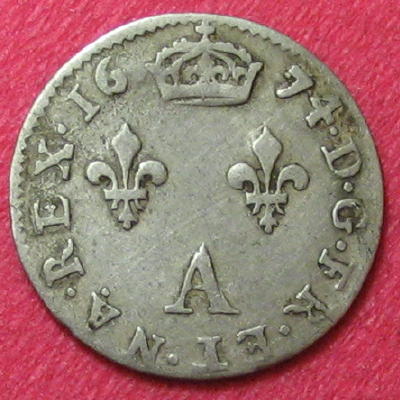 |   | WM n° 4180 (Fiche) 1674 4 sols dits - Lyon ou Vimy A/ LVDOVICVS.XIIII.D.GRA R/ FRAN.ET.NAVARAE.REX 1674 // D |