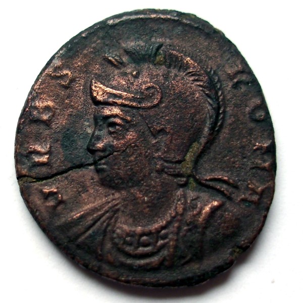 Centenional (AE 3) ( Bronce ) - Bajo Imperio RomanoWM n° 10174330 d.C.Atelier : Roma.2.5 gr. - 19 mm A/ VRBS ROMA Alegoría de Roma hacia la izquierda, portando casco y atuendo imperial. R/ AnepígrafaLoba hacia la izquierda, amamantado a Rómulo y Remo; arriba dos estrellas de ocho puntas. En exergo RFQCollection privéeRef : RIC VII Rome 331 variante (marca en el hombro)"Flor" de ocho puntos en el hombro de la loba