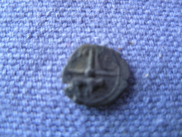 Rueda dividida por tres radios en dos cuadrantes y un semicírculo. Cuadrantes; inscripción ibérica, posible ILTITA , o ILTR.; creciente externo con punto central. Semicírculo lobo a derecha.