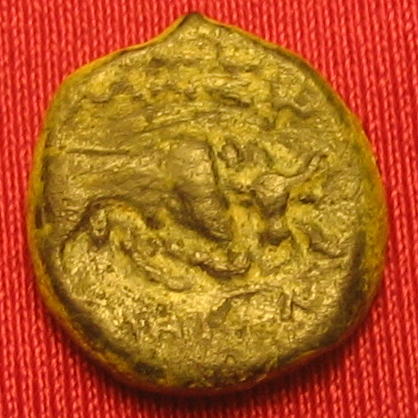 Bronze au taureau cornupète ( -- ) - Grecque marseillaiseWM n° 1033Milieu et fin du IIe siècle av. J.-C.Atelier : Marseille1.92 gr. - 14 mm A/ Pas de légende visibleTête laurée à droite R/ MAZZA // ..AK...NTaureau chargeant à droite sur un trait de sol, légende MAZZA dessus, légende ..AK..N.. dessousCollection privéeRef : -