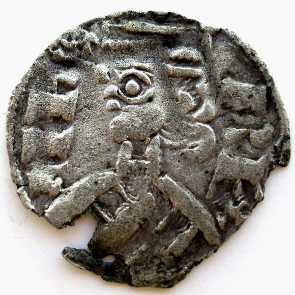 Busto del rey mirando a la izquierda y alrededor leyenda.