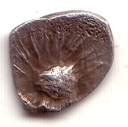 Obole dite ( -- ) - GauloiseWM n° 1050IIe et Ier siècle av. J.-C.Atelier : Saluvii (Saliens)0.45 gr. - 11 mm A/ sans légende visibleTête à gauche R/ sans légende visibleExcroissance de forme arrondie d´où partent des traits pour former un soleilCollection privéeRef : -
