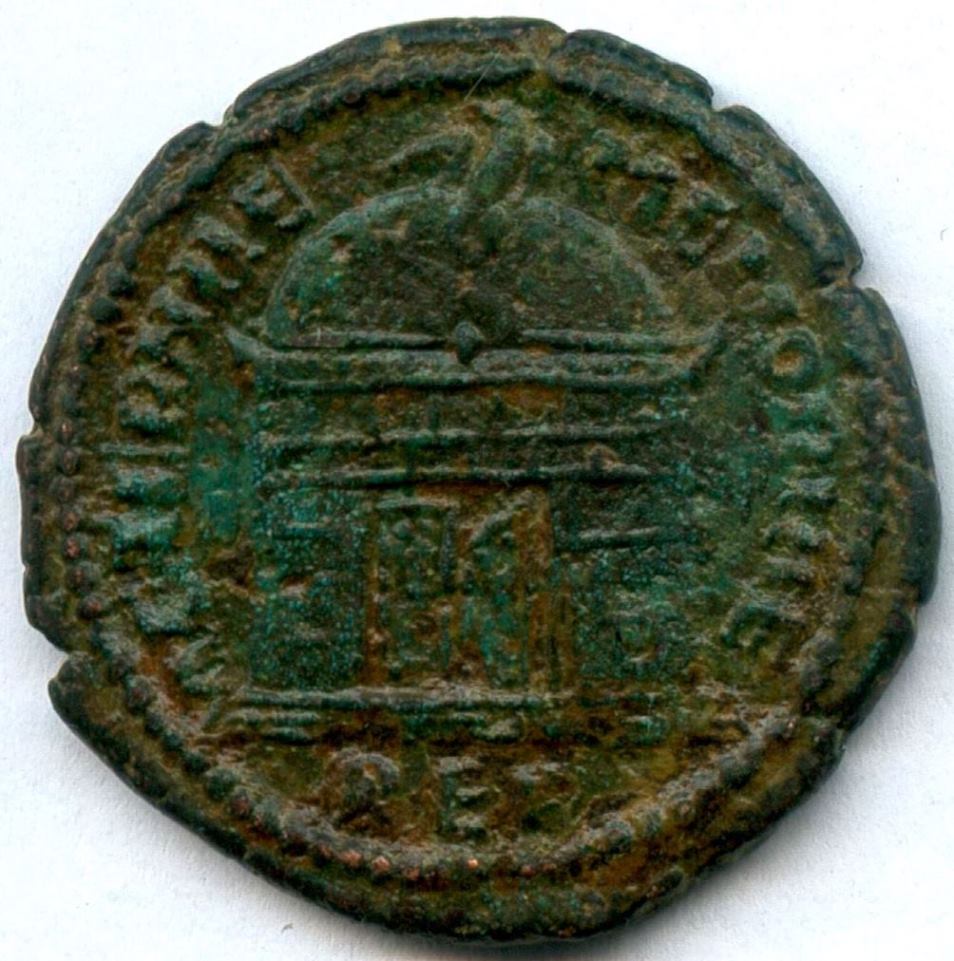 AE2 o follis ( Bronce ) - Bajo Imperio RomanoWM n° 10533310-311 d.C.Atelier : Roma9.66 gr. - 26 mm A/ DIVO ROMVLO N V BIS CONSbusto descubierto de Rómulo a derecha R/ AETERNAE - MEMORIAEMausoleo con las puertas entreabiertas y cúpula redonda rematada con águila.Exergo: REP (1ª oficina de Roma)Collection privéeRef : RIC VI Rome 257Provenance : Cliquez ici