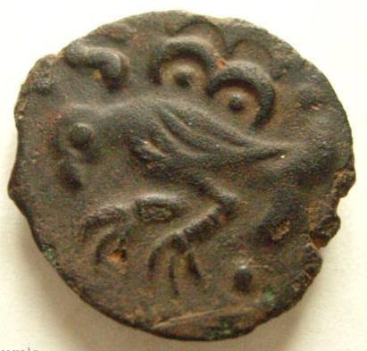 Bronze GIAMILOS/SIINV à l'oiseau ( Bronze ) - GauloiseWM n° 1330avant 52 av. J-CAtelier : Agedincum (Sens) ?2.54 gr. - 20 mm A/ GIAMILOSTête à droite, les cheveux divisés en grosses boucles, tirées en arrière. R/ SIINVOiseau à gauche ; derrière, un pentagramme et deux annelets centrés.Collection privéeRef : LT.7565 - DT.2631 - RIG.179