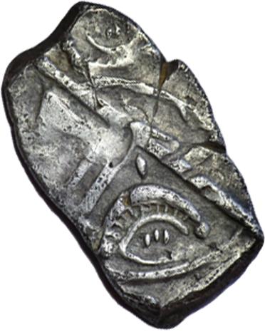 Drachme à la main ouverte ( Argent ) - GauloiseWM n° 1810Ier. s. av. J-C.Atelier : Moyenne Vallée de l'Hérault ?2 gr. - 17 mm A/ AnépigrapheTête à gauche, chevelure représentée par des volutes R/ AnépigrapheCroix. Croissant strié dans le premier et quatrième canton, main ouverte dans le second, hache dans le troisième canton.Collection : ced34Ref : Provenance : 34