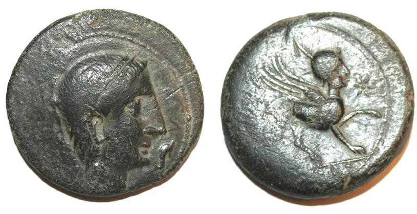 AS ( Bronce ) - IbéricasWM n° 2222165-150 a. de C.Atelier : CASTULO18.96 gr. - 31 mm A/ AnepigraficaCabeza viril diademada a derecha, delante delfín R/ KASTILOEsfinge a derecha, delante estrella, debajo ley iberica KASTILOCollection : zeiharRef : VillarongaProvenance : JAENPerteneciente a la SERIE V(M. Paz Garcia-Bellido, Las monedas de Cástulo con escritura indigena)
