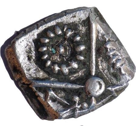 Drachme Goutrens au torque ( Argent ) - GauloiseWM n° 2463Ier siècle avant J-CAtelier : Goutrens (Aveyron)2.1 gr. - 15 mm A/ AnépigrapheTête à gauche. R/ AnépigrapheCroix bouletée au centre. Rouelle (ou fleur) dans le premier et quatrième canton, torque dans le deuxième canton, hache évidée dans le troisième.Collection privéeRef : Provenance : 34