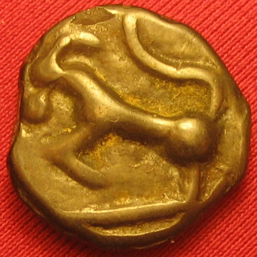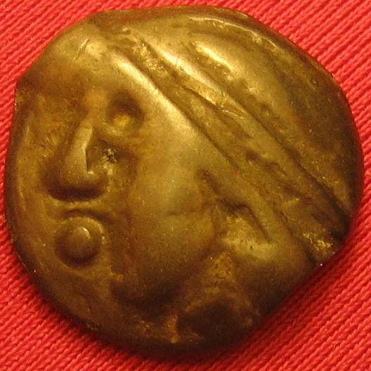Potin à la grosse tête ( Potin ) - GauloiseWM n° 2479Ier siècle av. J.-C.Atelier : 4.64 gr. - 18 mm A/ AnépigrapheTête casquée à gauche avec bandeau R/ AnépigrapheAnimal à droite, queue relevéeCollection privéeRef : LT 5368 var.