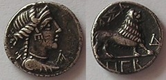 drachme légère de Marseille ( Argent ) - Grecque marseillaiseWM n° 2536II - I siécle avant JCAtelier : 2.68 gr. - 19 mm A/ AnépigrapheTête à droite d'Artémis. Style grecque,Buste drapé, portant un collier de perles. Les cheveux serrés en torsades retenues sur le dessus de la tête et sur la nuque avec des boucles d'oreilles et portant un collier de perles et derrière l'épaule l'arc et le carquois. R/ MAZZALion marchant à droite,les quatre pattes sur la ligne d'exergue, MASSA au dessus.Collection : dominiqueRef : Provenance : 13